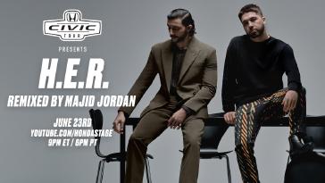 The virtual 2021 Honda Civic Tour will conclude with a unique collaboration between OVO Sound Recording artists and burgeoning pop duo, Majid Jordan, along with Grammy-winning R&B powerhouse and Civic Tour headliner, H.E.R., and the global debut of the all