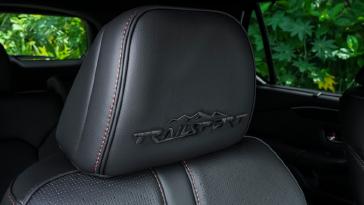 The TrailSport cabin stands out with comfortable, easy to clean synthetic leather upholstery and a sliding panoramic sunroof. Exclusive orange contrast stitching and head restraints embroidered with the TrailSport logo align to the rugged design direction. All-season floor mats add function and durability, protecting the carpet from snow, mud and debris. Power folding mirrors and a heated windshield are standard.