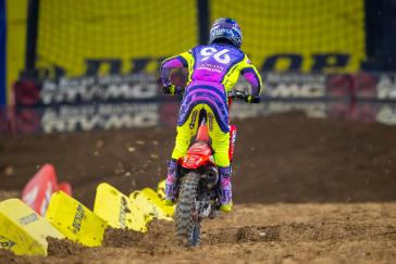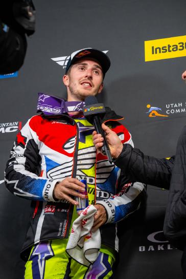 "It was a bit of a bummer in the first race—it was just a silly little mistake; it wasn't really a crash, but then as soon as I went off the track where it meets the concrete, it's just so slippery and it's hard to save that. I just reset after that one, and I think we did pretty good. I'm happy with how the night went, honestly. This format is one of the tougher ones for me; those short-duration sprints don't come easy. I find the short turnaround from the first to the second race easier than the last one, where you're kind of waiting around a little bit longer. I feel like the longer you wait, the tougher it is because it's like you're starting fresh again. The start is everything—even in a normal main event, it just makes your night so much easier. You see the chaos that goes on and I've been on the other side of that, so I just try to give myself the best shot into that first turn. In the last moto, I didn't get that one middle lane, and that gave Eli the inside; that was where that race was decided, I think. I still tried to push and get in a rhythm. I knew the night win was there, and I needed to get him, but I think that if I keep putting myself in the top five around the first turn every weekend and click off good laps, good things are going to start happening. I like my chances over the next couple races. From what it could've been, we did pretty good damage control, and we pulled four points back on the lead. We live to fight another day, and I'm looking forward to Glendale."