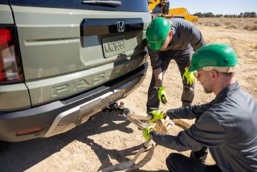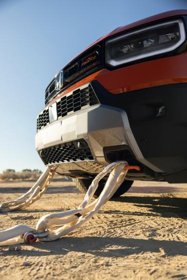 The new Passport TrailSport and TrailSport Elite are the first Honda light truck models equipped with exposed and easily accessible heavy-duty front recovery points. The two bright orange cast iron front recovery points were intentionally designed as a closed loop recovery system for additional safety and are each capable of supporting twice the Passport's weight. Moreover, the recovery points are powder coated to resist corrosion and engineered to break away in the event of a front collision. This patented design is a world’s first and enables the Passport to target top-of-class safety ratings.