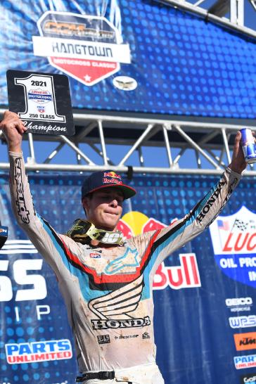 "Oh my goodness, it's a good day in the end," Jett Lawrence said. "I think that's the worst I've ridden in a while, but I still got the title. It feels so great, as we've been working quite a while to get this. I've got to thank the whole crew for getting me here—my brother, my whole family, my manager and all of Honda and HRC. It's awesome and we're going to enjoy it for a little while, but then it will be back to the drawing board for next season to hopefully back it up."