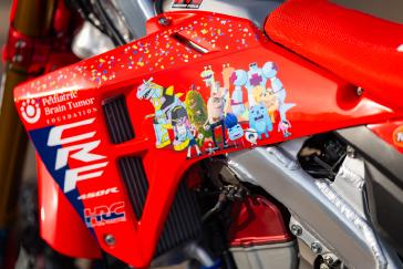 The parts, which were used on the track during this past weekend's opening SuperMotocross round in Charlotte, North Carolina, feature special artwork created by PBTF patients and their siblings, and produced by Throttle Jockey, the team's graphics sponsor. The theme for this year's design was "The Power of Dreams: My Podium Moment," a concept that emphasizes the strength, imagination and courage of children with brain tumors, aligning with Honda's brand ethos and providing an emotionally resonant and timeless framework. The artwork serves as a powerful reminder of the kids who never stop dreaming while facing their toughest opponent, one far more relentless than any rival on the track.