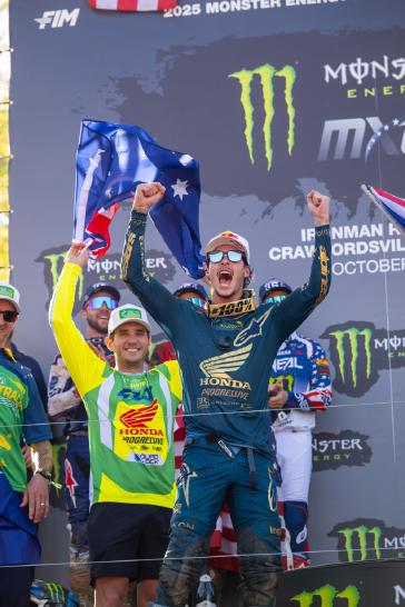 Honda HRC Progressive closed out an unforgettable season on Sunday, with a dominant showing at the Motocross of Nations, held this year on U.S. soil at western Indiana's Ironman Raceway. The squad's 450 riders—brothers Jett and Hunter Lawrence—joined Honda Australia's Kyle Webster to successfully defend Australia's MXoN title, one year after the same trio earned the country its historic first-ever victory in the prestigious race. Meanwhile, Jo Shimoda, who normally races a 250 for Honda HRC Progressive, led Team Japan to an 11th-place finish aboard a CRF450RWE.