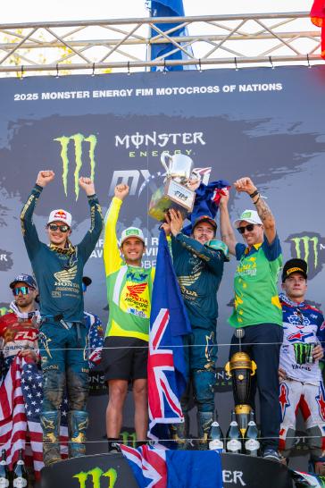 "I'm really proud of Jett, Hunter, Jo, and Kyle as well," said Brandon Wilson, Manager of Racing & Advertising at American Honda. "Hunter and Jett leading Australia to win back-to-back is incredible, and Kyle's strong rides after first-lap mishaps showed the heart that it takes to win an event like this. Having this kind of success for the entire team—all on Honda machinery—is something extremely special. Then when we look at Jo coming out on a 450 after only five rides, and competing against and beating some of the best riders in the world like he did, was also really impressive. It's a great way to end the year, and it's a race that everyone will remember for a long time. Congrats to all the countries that competed in this special event, and a big thank-you to all the staff and sponsors that helped make this possible."