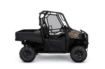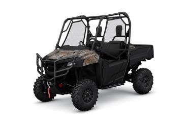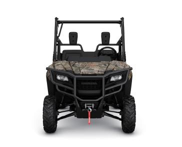 - Pioneer 700 Forest: To enhance the driving experience on the trail, the Forest is outfitted with an extended-coverage front bumper, a 4,500-pound Warn Winch, dual bed lights, in-bed 12V outlet and an additional 3.9L of under-dash storage. Plus, the Forest trim level includes TrueTimber Atera camo, a pattern that's exclusive to Honda in the powersports industry.