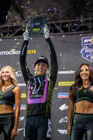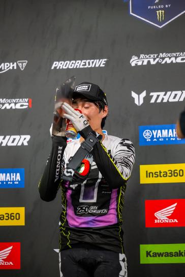 "Honestly, the day was really stressful, especially the second moto—I need to rewatch it! There was a lot of contact out there, but I'm glad I stayed up and kept pushing. To be the first Japanese rider to win a championship like this means so much to me. Accomplishing something so important gives me a huge confidence boost, and I'm really proud of everyone who helped make this possible."
